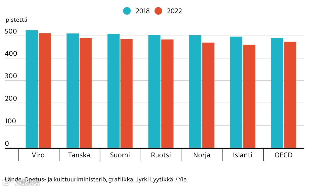 在之前的2018年Pisa评估中,主要内容是阅读能力,与这次的结果相比,芬兰的平均分下降了不下30分。