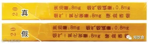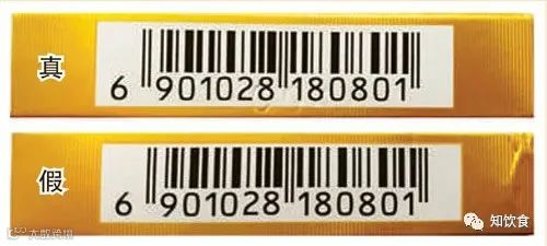 正面商标纸印刷工艺差异对比:真烟商标纸采用银柱纸、凹印、胶印印刷,中间部分图案颜色较浅,商标纸中间部分手感磨砂;假烟采用高清扫描仿制打印,中间部分图案颜色较深,中间部分