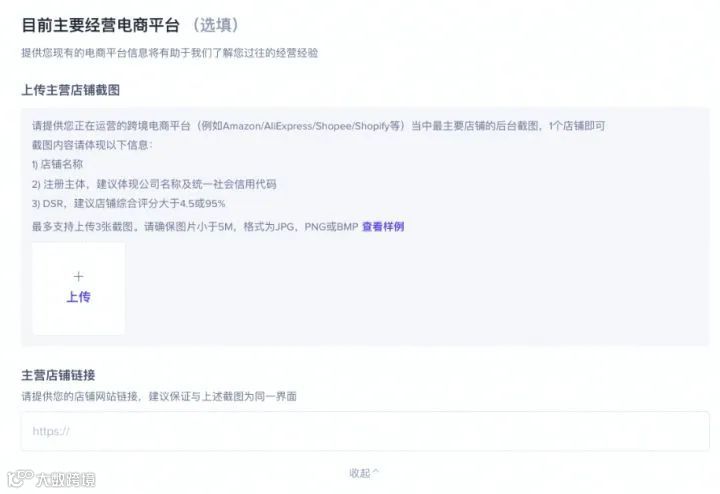 需填写主要经营的电商平台信息,并提供店铺链接与截图作为证明
