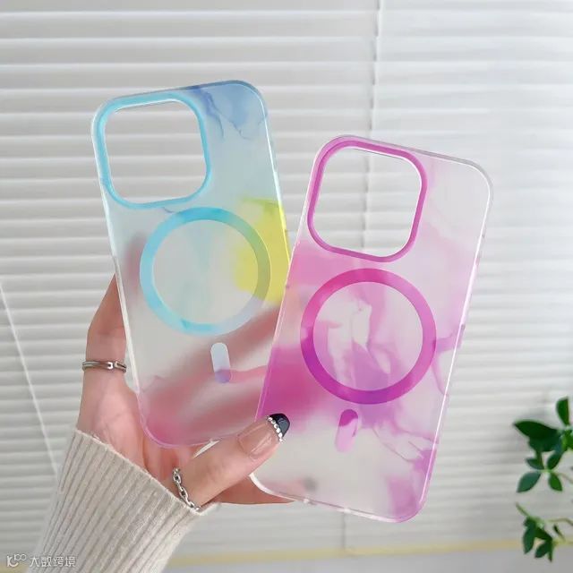 Luxury Watercolor Phone Case for iPhone 14 13 12 Pro Max Magsafe Cases Matte Marble Magnetic Transparent Cover for iPhone 12 13 ProMax