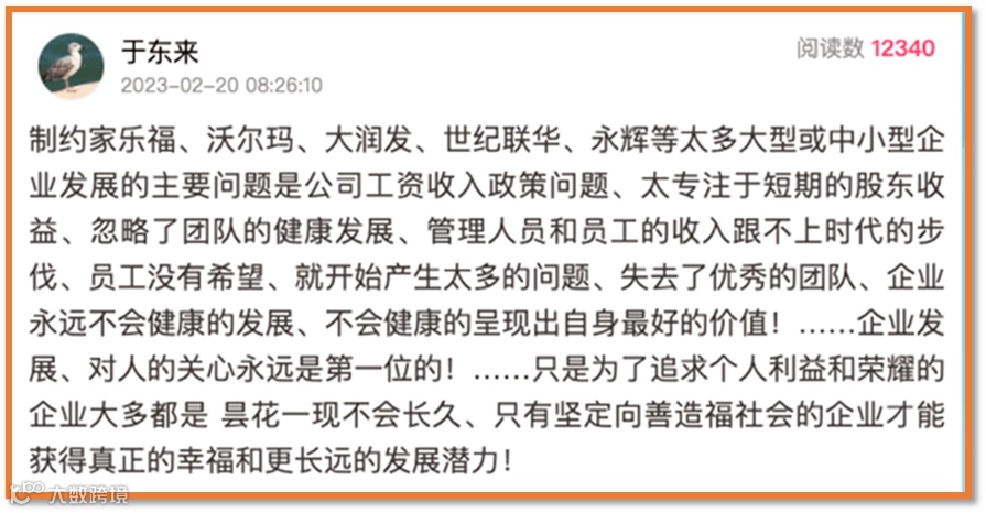 雷军称其为“神一般的存在”,马云亦评价:“胖东来是中国企业的一面旗帜”[k]。这些评价凸显其在零售业中的标杆地位。