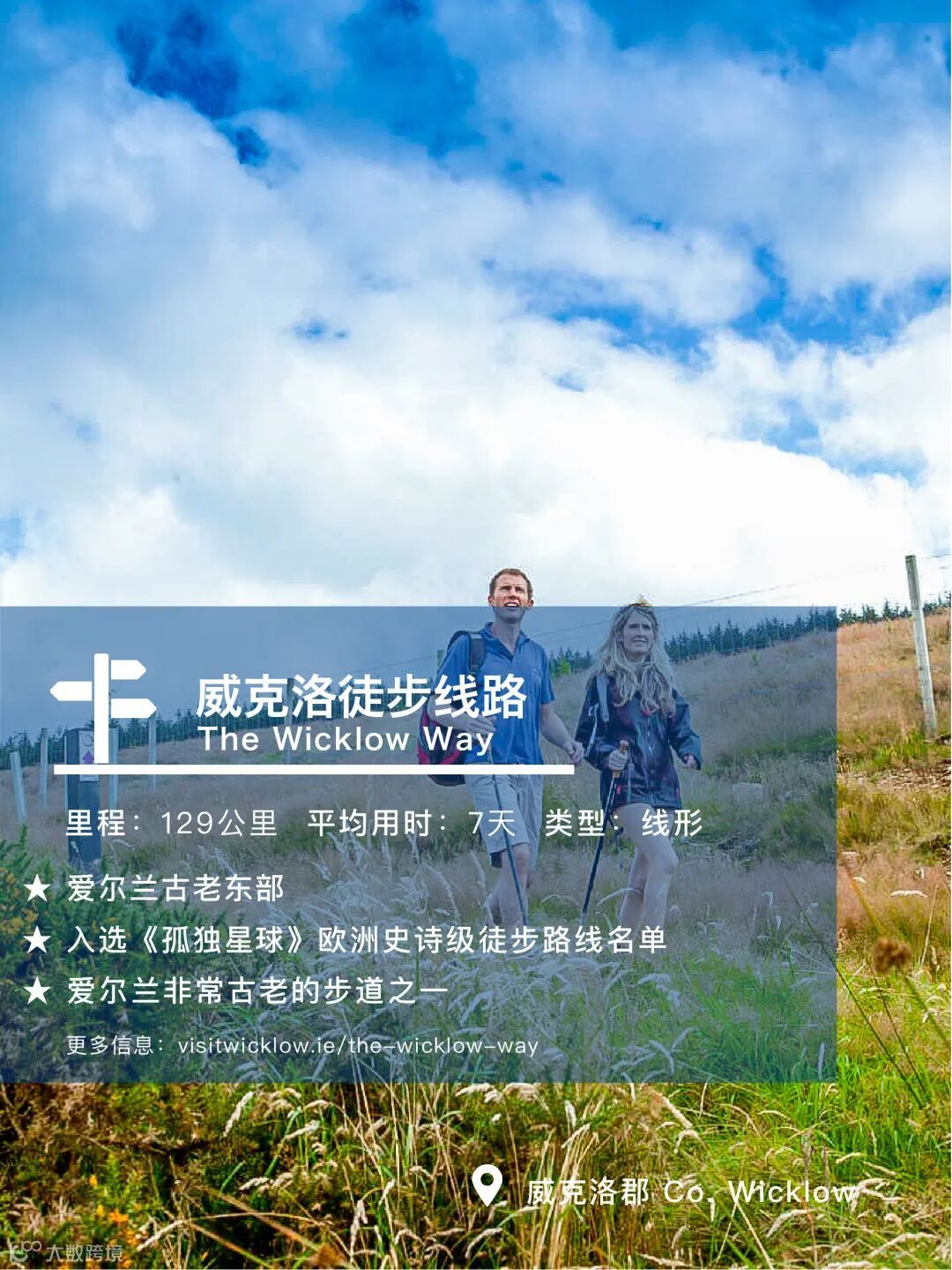 这条步道是爱尔兰非常古老的步道之一,每年有超过两万人在威克洛步道享受徒步的快乐。由于它靠近都柏林,因此一直是爱尔兰受欢迎的步行路线。