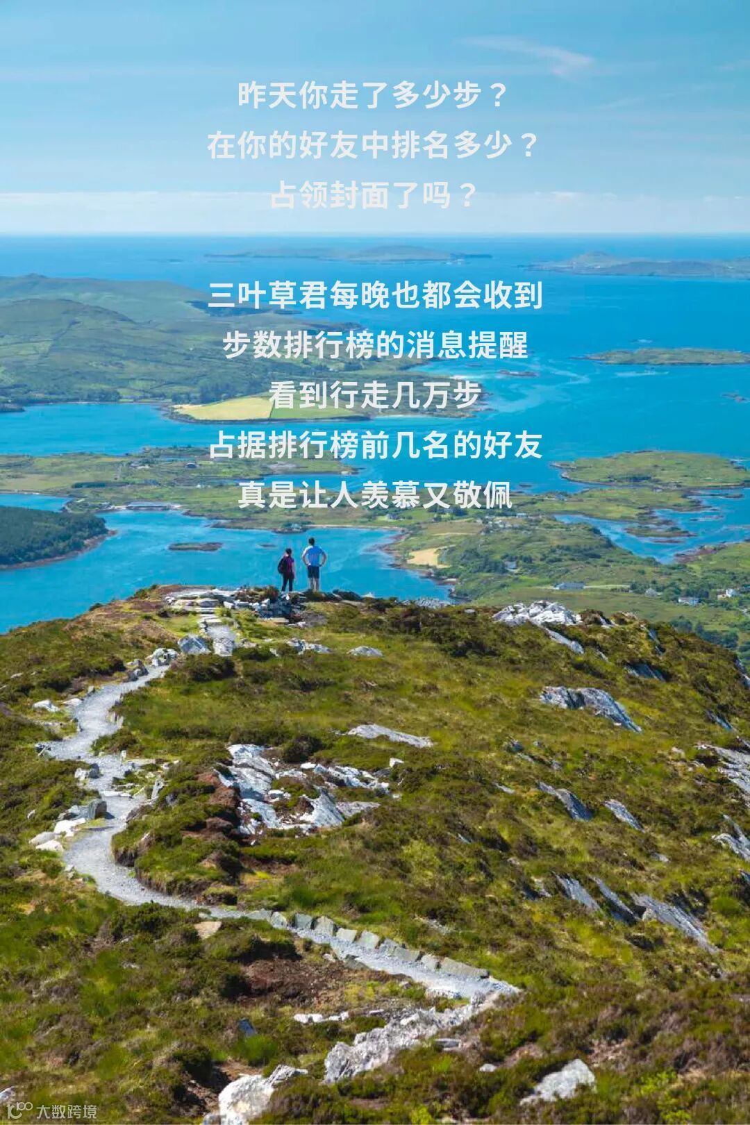 若要跻身步数排行榜前三名,步数至少一万步起,那么徒步路线的长度要6公里以上。在爱尔兰,可以轻松找到这样的步行路线,在风景里行走,轻轻松松get一万步。