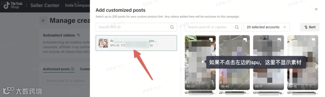 避坑提醒:进入素材选择页面后,必须点击SPU ID才能显示相关素材[k]。