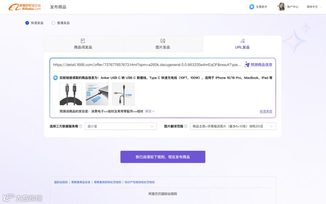 通过智能抓取功能,可在30秒内将目标商品的标题、图片、详情等信息生成国际站商品草稿,并支持多商品批量后台搬运,大幅缩短上架流程[k]。