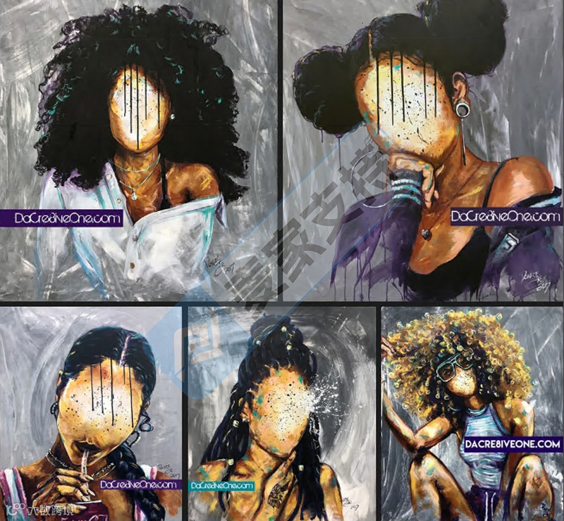Donice Bloodworth, Jr.创作的一系列关于黑人女性之美的作品备受欢迎,画作中的黑人女性都具有卷曲乌黑的头发,而且特意隐去面孔,这样的设计让观众能在画作中看到自己,感受到作品所传递的美丽与力量。Donice Bloodworth, Jr.的作品探索并呈现出人们内在的美和真实的自然状态,他通过绘画和插画传递赞美人们真实本来面目和美丽之处的信息,其艺术风格独特且深入人心,激发了人们对身份认同、多元文化和自然之美的思考和探索。