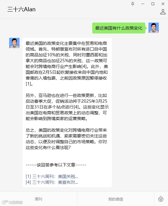 微信公众号《三十六Alan》由三十六个人主理,专注于跨境电商实操经验分享,内容涵盖亚马逊运营、广告托管、企业培训等领域。