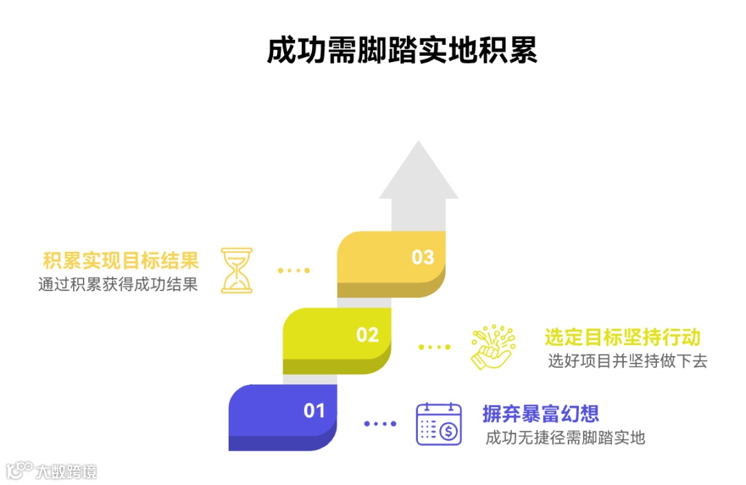 没有一夜暴富的项目,别做梦,得脚踏实地。选好一个项目,坚持努力做下去,才能得到想要的结果。成功不是一蹴而就的,而是慢慢积累出来的。想赚米,就得做有积累的事。