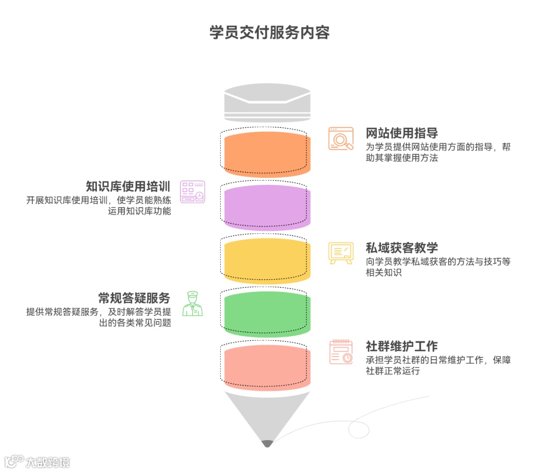 在优质内容基础上,叠加社群互动、一对一咨询、资源对接、如付费社群、高阶训练营,形成内容 + 服务 + 社交的生态,用户付费不仅买知识,更买成长氛围和人脉资源,核心价值是陪伴式成长。