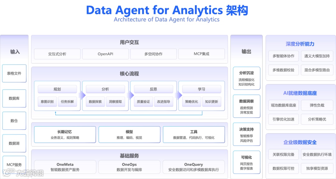 本篇将介绍DMS的一款数据分析智能体(Data Agent for Analytics )产品的技术思考和实践。Data Agent for Analytics 定位为一款企业级数据分析智能体, 基于Agentic AI 技术,帮助用户查数据、做分析、生成报告、深入洞察。由于不同产品的演进路径,背景都不一样,所以只介绍最核心的部分,来深入剖析如何构建企业级数据分析助手:能力边界定义,技术内核,企业级能力。希望既能作为Data Agent for Analytics产品的技术核心介绍,也能作为读者的开发实践的参考。
