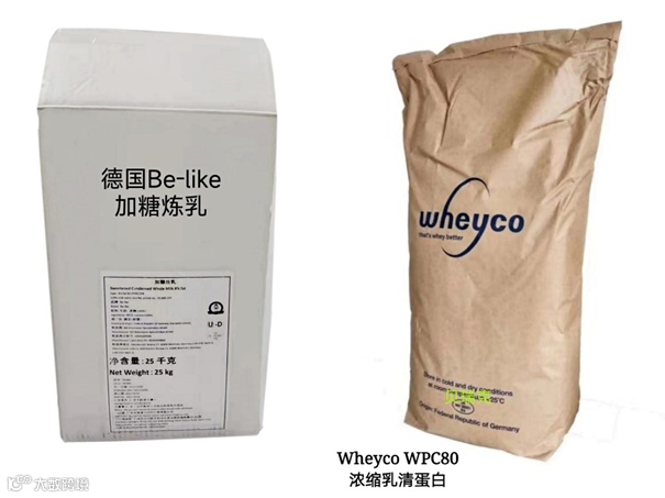 加糖炼乳、浓缩乳清蛋白WPC80、奶粉、稀奶油、脱蛋白乳矿物乳糖粉、国产黄油、奶油粉 |