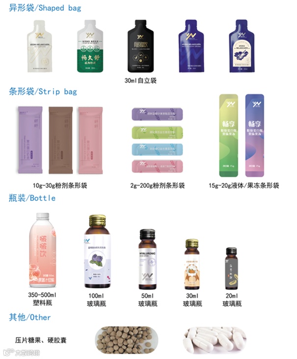 固体饮料、液体饮料、压片糖果、代餐粉代工 |