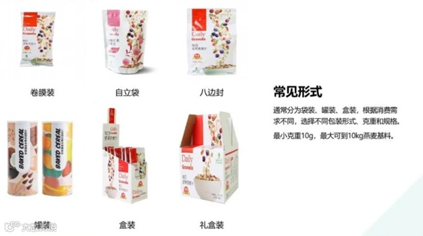 • 燕麦片:海苔/青稞/藜麦燕麦脆、水果坚果燕麦脆、高蛋白燕麦块、膨化麦片等;