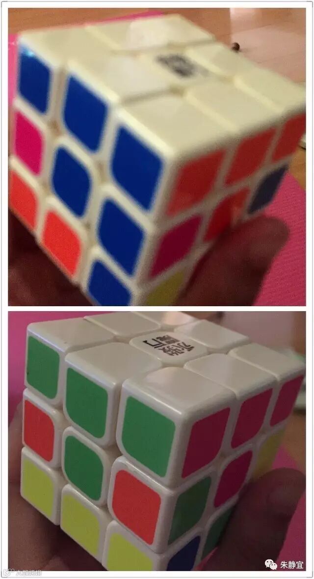 方法:选择任一侧面转动180度,将顶层的白色转到底层。然后用第三层中间方块颜色寻找第二层中间的方块颜色,再转180度转回来。一直循环...直到圈出部分颜色相同。