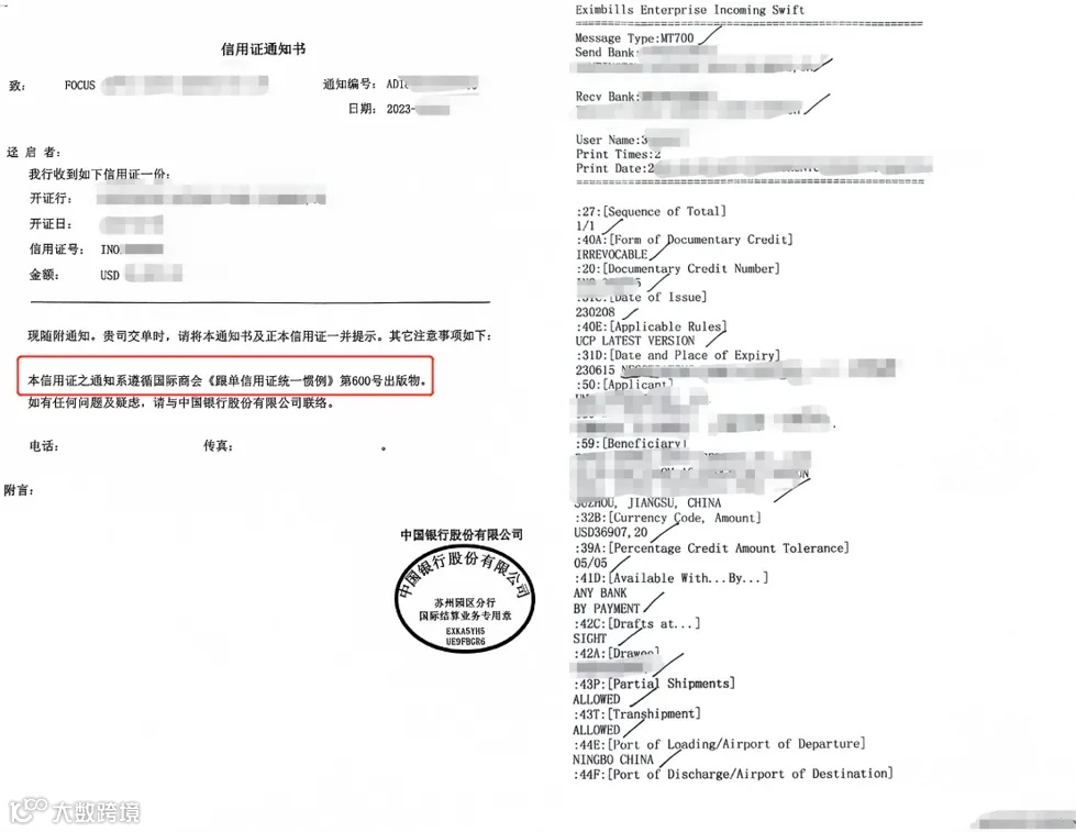 Maybank 通过其在中国的合作银行(中国银行宁波分行)通知信用证给A公司。