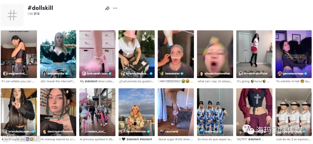 被选中的人会变成狂热的传道者,这种粉丝激励机制为Dolls Kill带来了大量的粉丝和互动,Dolls Kill已经在TikTok上形成了品牌圈层闭环,不仅#dollskill的tag观看数已达到1.9亿,Dolls Kill的粉丝也会在tag下方分享自己的购买心得、穿搭建议。