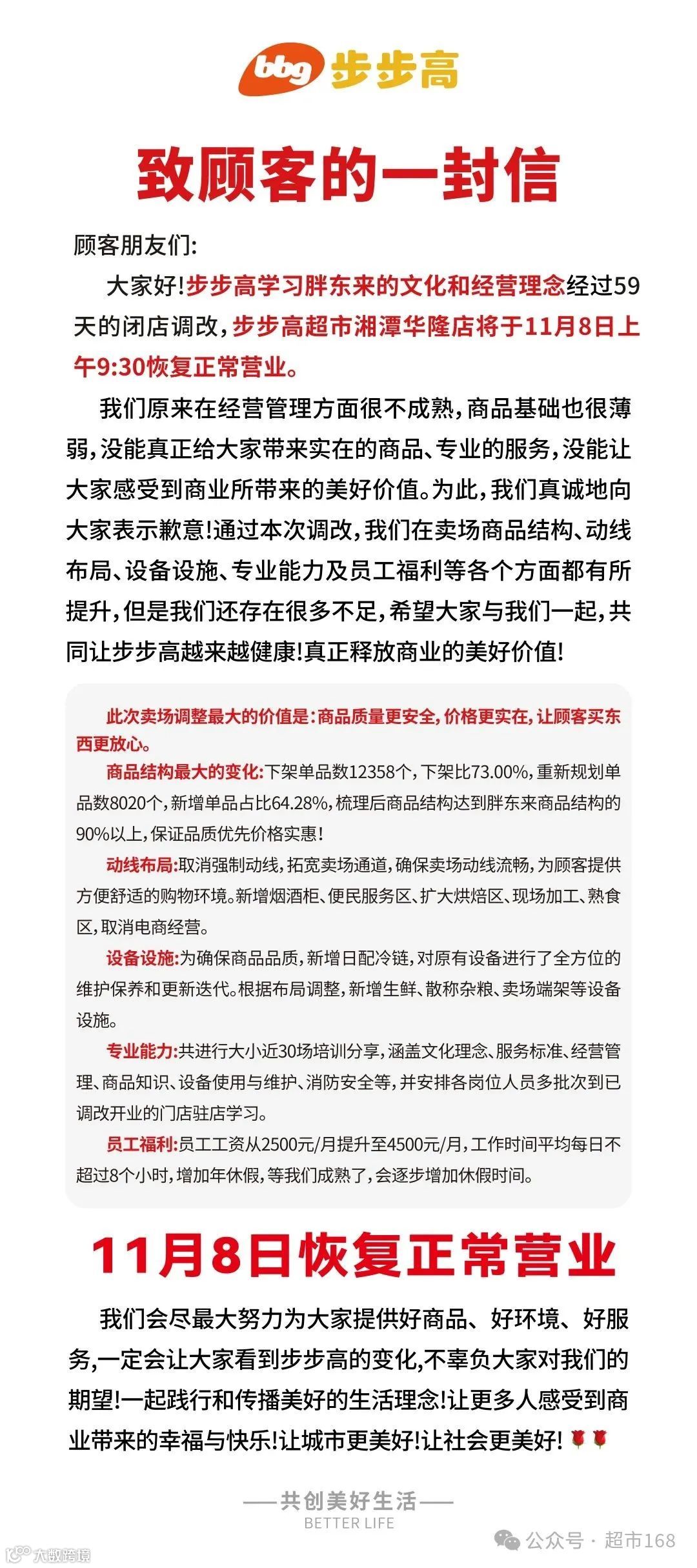 2024年11月8日,历经59天闭店调改的步步高超市湘潭华隆店正式恢复营业