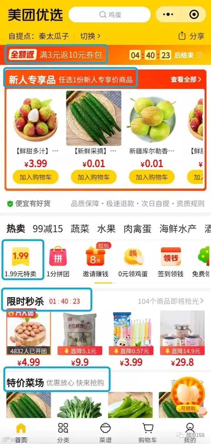 美团优选等平台通过“全额返”“新人专享”“限时秒杀”等方式营造低价印象,如0.01元蔬菜、0.99元鸡蛋等,强化“便宜”认知[k]。然而,实际价格对比显示,在五一促销期间,大型超市的活动商品普遍低于社区团购平台售价[k]。