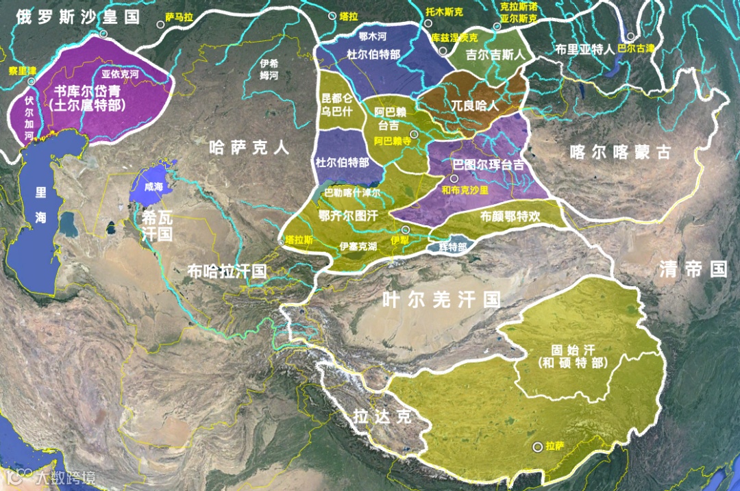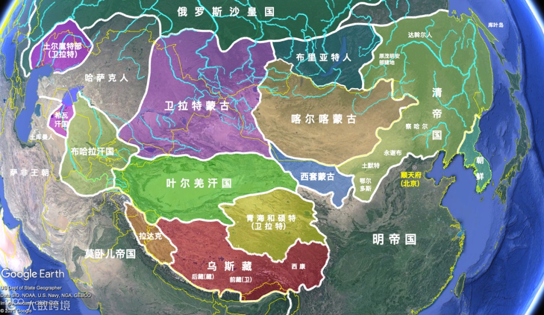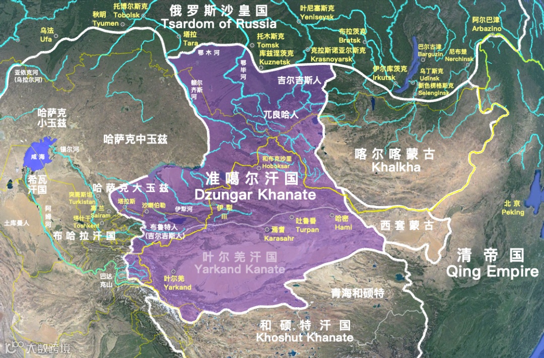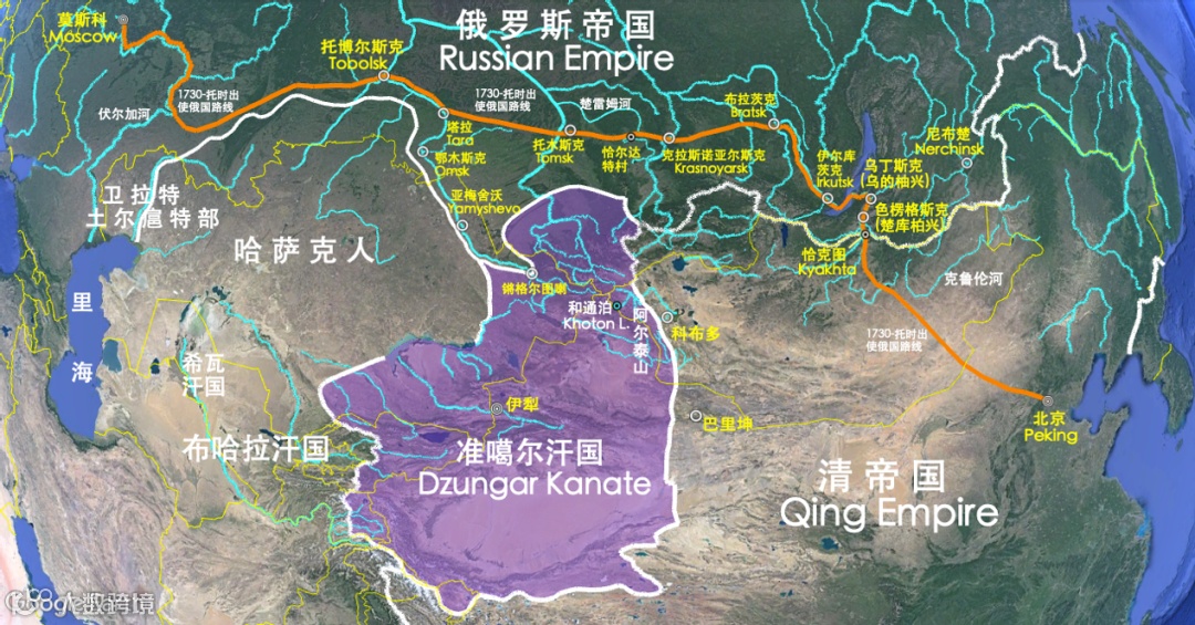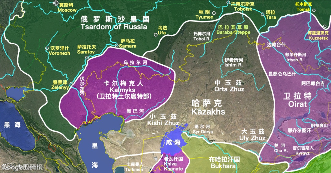 以下,人名均加粗显示,首次出现的人名附加下划线,中国人名,姓在前,外国人名,姓在后,重要地名以蓝色字体显示,图片点开均可看大图。游牧部落如“喀山汗国”“西伯利亚汗国”“哈萨克汗国”等边界极不稳定,相关边界线仅供参考。
