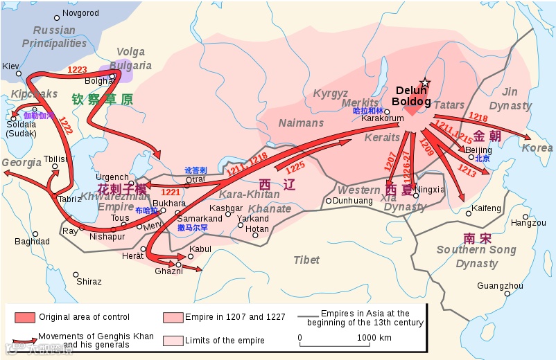 (参考张芝联《世界历史地图集》和勒内·格鲁塞《草原帝国》)