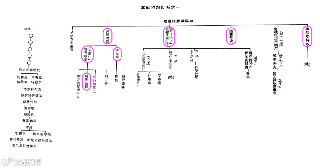 1487年,16岁的达延汗(Dayan Khan,孛儿只斤·巴图蒙克)开始亲政,1506年达延汗统一东部蒙古,建立六个万户,即左翼的察哈尔(Chahar,察罕儿),喀尔喀(Khalkha,哈喇哈)和兀良哈(Uriankhai,黄毛),右翼的鄂尔多斯(Ordos,袄儿都司),土默特(Tumed,满官嗔)和永谢布(Yngsiyeb,应绍不)。