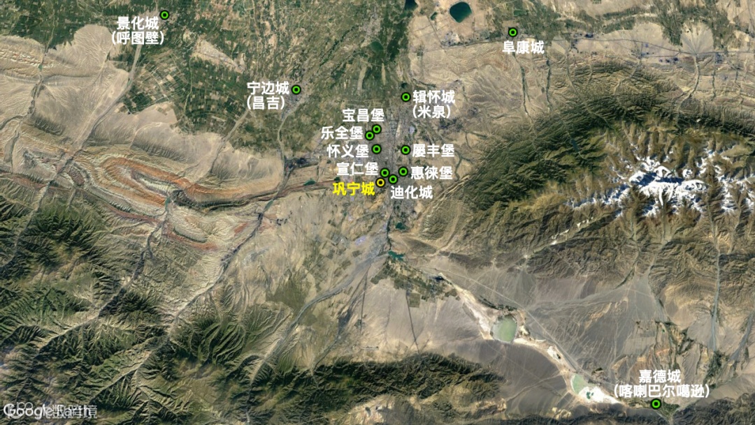 -巴里坤:会宁城(1772,在巴里坤城东), 镇西城(1731,在巴里坤县)