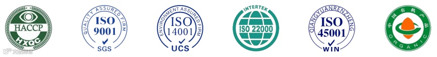 HACCP关键点控制体系认证 ISO 22000食品安全管理体系认证 ISO 9001质量管理体系认证 ISO 14001环境管理体系认证 ISO 45001职业健康安全管理体系认证 有机工厂认证
