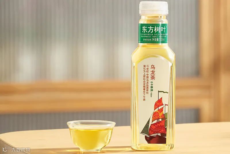 东方树叶采用独家抗氧化工艺,将瓶内氧含量降至极低水平,有效防止茶汤因光照氧化变色,保持澄澈通透的视觉体验[22]。该设计摒弃传统包裹式包装,直观呈现茶汤原色,提升产品高级感。
