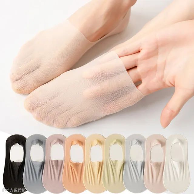 5Pairs Women Invisible Boat Socks Breathable Silicone Non-slip Ultra-thin Sock Slippers High Quality Elastic Ice Silk Low Sox
