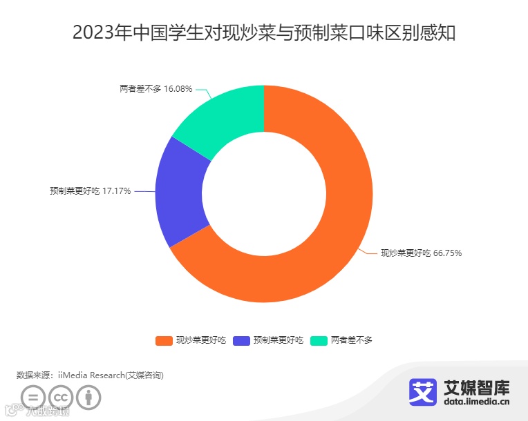 在口味感知方面,超六成学生认为现炒菜更美味,仅17.17%认为预制菜更好吃,16.08%认为两者差别不大[k]。
