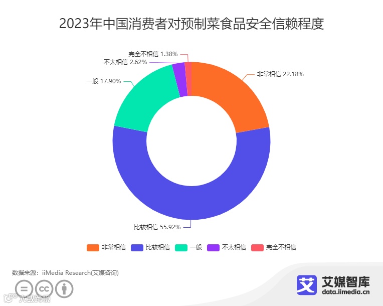 尽管预制菜市场发展迅速,但公众对其食品安全与营养价值的担忧持续升温。艾媒咨询数据显示,2023年仅有22.18%的消费者对预制菜食品安全“非常相信”,55.92%表示“比较相信”,17.90%认为“一般相信”[k]。