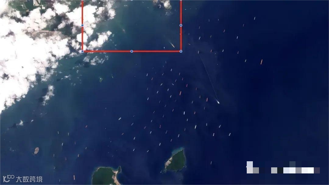 红色方块表示巴拿马运河区域,周围则是等待从太平洋一侧穿越巴拿马运河的船只。 图片来源:CNBC