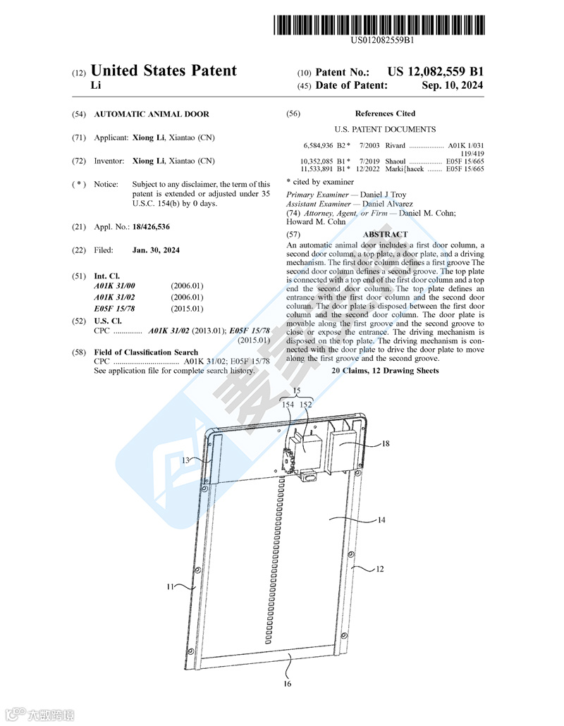 本案是Dnl Zito Castellano代理国人卖家Xiong Li在弗吉尼亚东区发起的一起TRO维权案件,涉案产品为Xiong Li在2024年9月10日下证的自动动物门美国专利,专利号为:12082559,共有85个店铺涉案,并被TRO冻结,目前该案件处于申请PI初步禁令状态,涉案卖家需及时处理,避免缺席判决后损失进一步扩大!