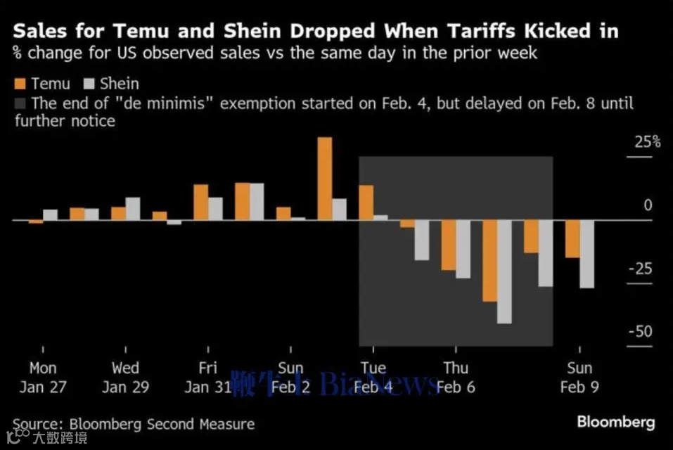据彭博社报道,在特朗普宣布取消小额包裹免税政策后,SHEIN和Temu过去一周在美国的销售额大幅下降。