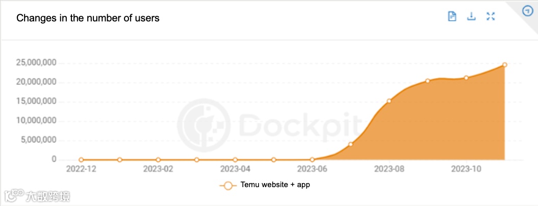 2023年7月,Temu进军日本。不到半年时间,Temu在日本的用户人数就已经超过1500万人,且每月用户人数以220万人的规模增长。