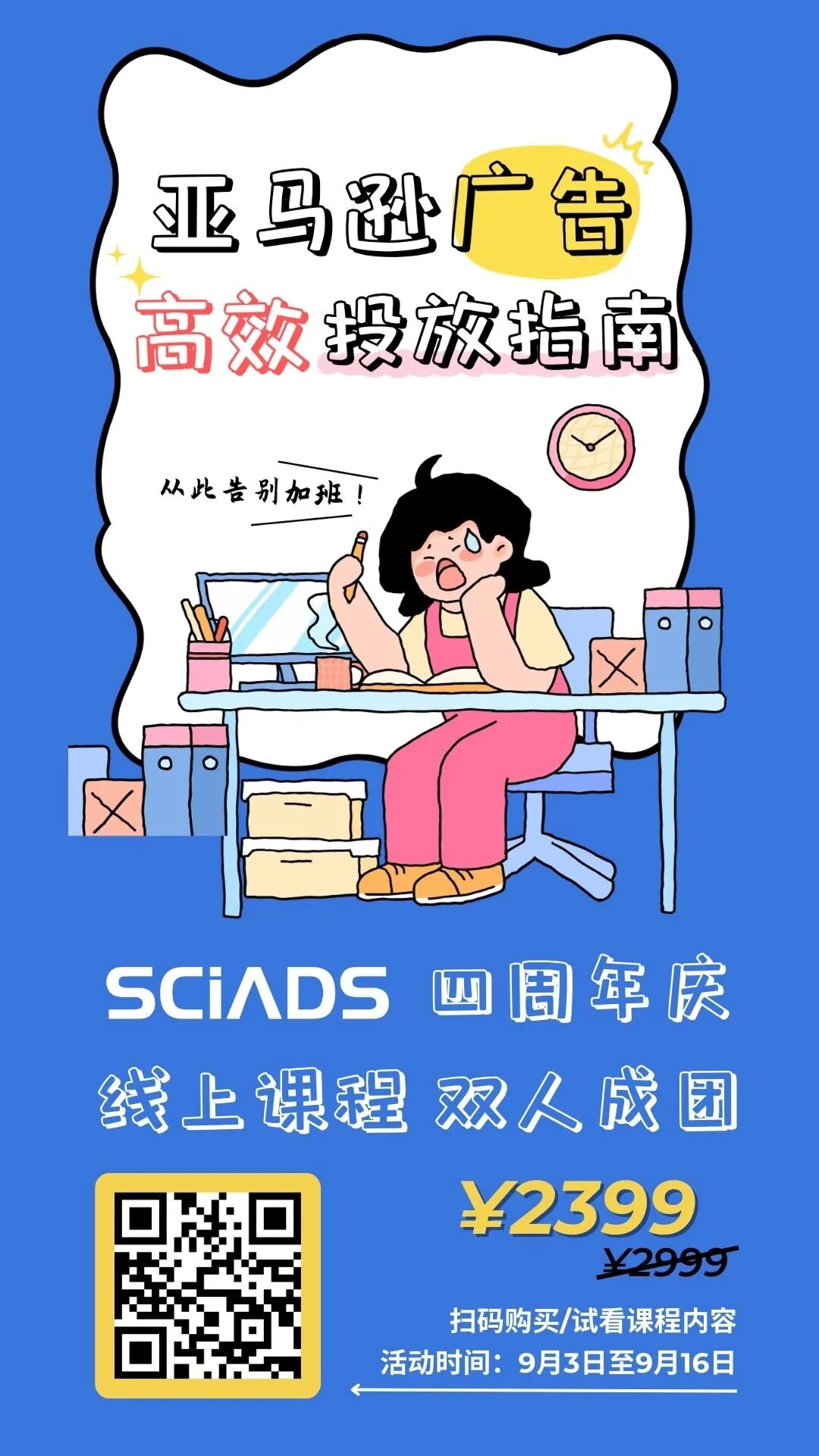 延续周年庆惯例,即日起到9月16号,SciAds亚马逊广告课程俩人成团,抱团价只要2399!