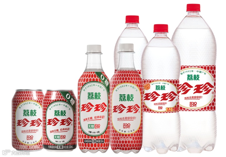 自1992年上市以来持续热销33年,是珍珍主力产品,深受80、90后喜爱[k]。六角形瓶身设计呼应荔枝外观,果香浓郁、气泡充足,采用低热量、0脂肪配方,并推出0卡路里的“无糖珍珍”版本,适配佐餐、休闲及调饮场景[k]。