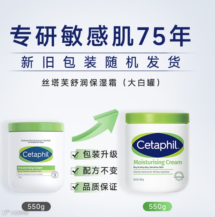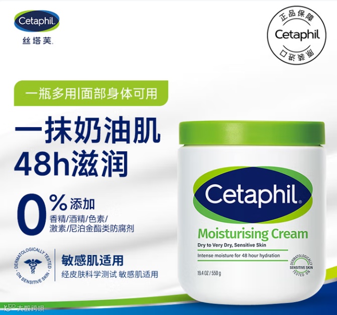1、丝塔芙(Cetaphil)舒润保湿大白罐550g 面霜不含烟酰胺