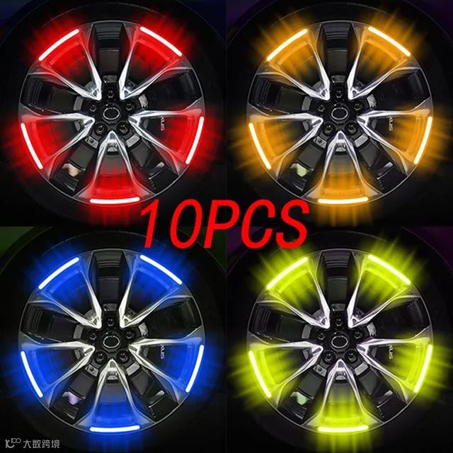 NEW 10pcs Car Hub Reflective Sticker Car accessories Decorative Strips General for use of bicycle automobile and motorcycle tyre