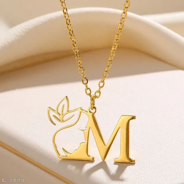 Beauty Flower Initial Necklace Women Girl Gifts Stainless Steel Gold Color Letter Pendant Choker Alphabet Jewelry Free Shipping