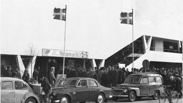 1958年,首家正式宜家商场在阿姆霍特开业,占地6700平方米,是当时北欧最大家具展厅,开业当天顾客排起长队[k]。