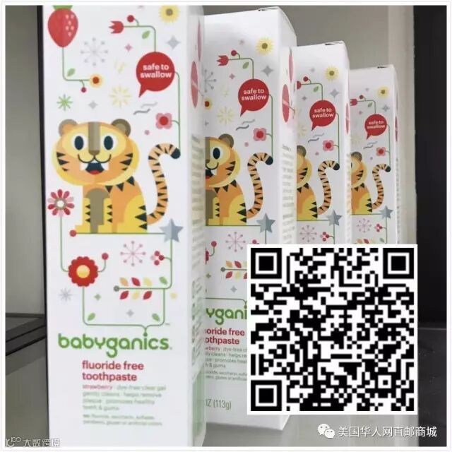 美国babyganics甘尼克宝贝天然婴幼儿可吞咽无氟牙膏,纯天然成分,