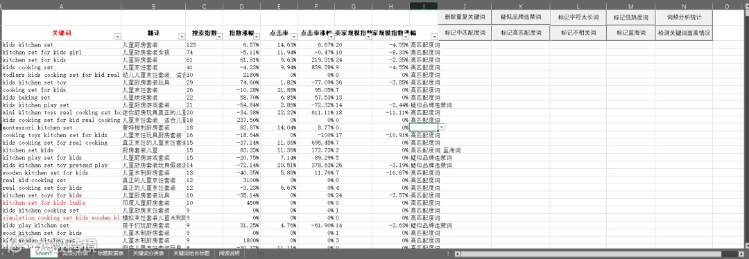- 标识低频词:搜索指数为1、点击率为0%的关键词可批量标记,后期用于补充覆盖[k]。