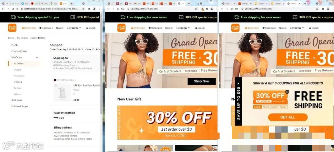 Temu为新注册买家提供了3张30%的折扣券,没有最低消费要求,最高可减30美元。由于Temu对于新人用户给出的折扣力度非常大,且部分引流产品价格打得相当低,对于海外买家的吸引力相当高