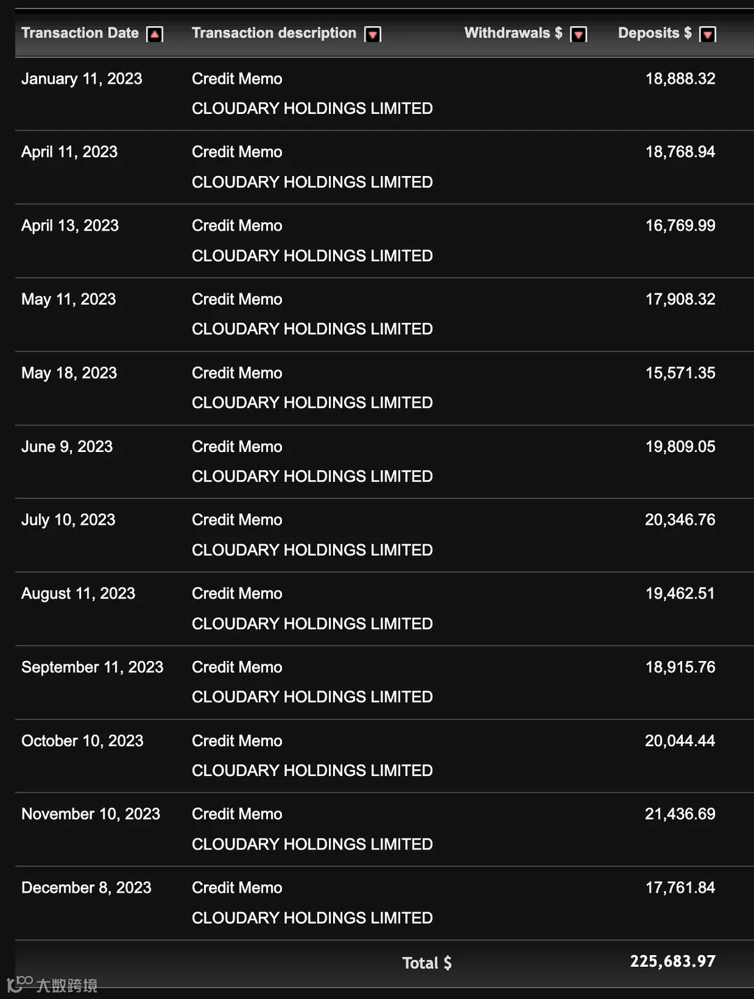 那段时间加拿大修改了银行法规,处理那些繁琐的行政手续花了不少时间,所以当时赚的钱延迟了才到账。