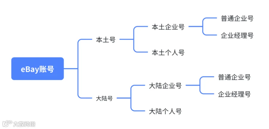 eBay账号分为大陆号(中国信息注册)与本土号(外国信息注册),两者均细分为个人号与企业号;企业号进一步分为普通企业号与经理号[k]。