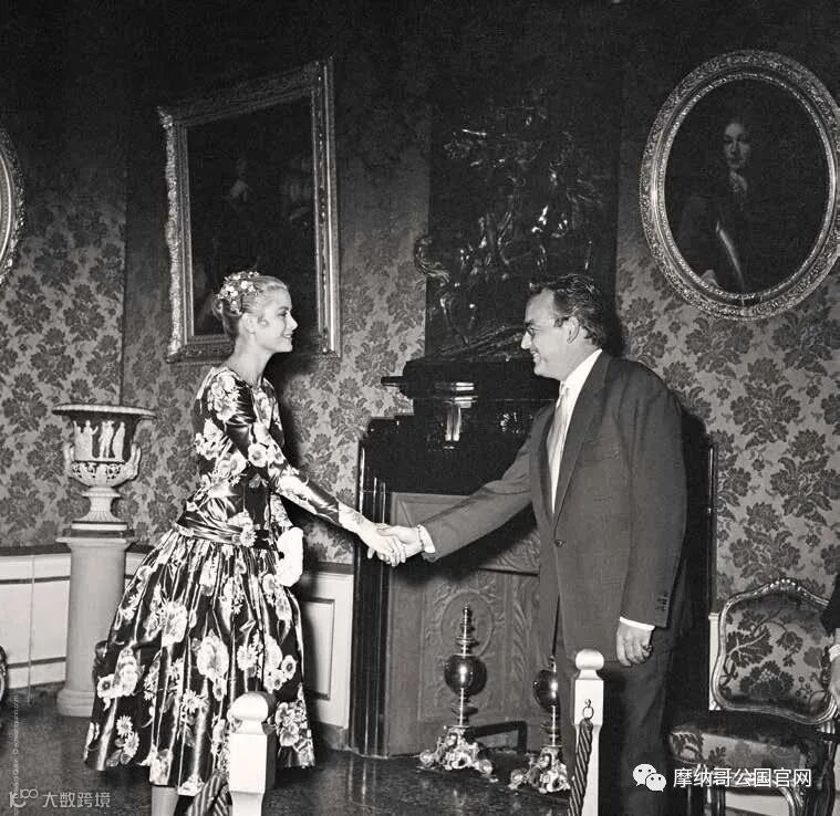 在戛纳电影节放映希区柯克的《捉贼记》之前,格蕾丝·凯利在乘坐火车穿越法国时得到了一个改变历史的想法。Paris Match的记者皮埃尔·加兰特建议安排这位女演员与摩纳哥亲王会面。格蕾丝·凯利同意了,记者陪她去了亲王宫。5 月 6 日下午 3 点,她穿着印有粉红色和绿色花朵的黑色丝绸连衣裙,等待兰尼埃三世亲王的到来。