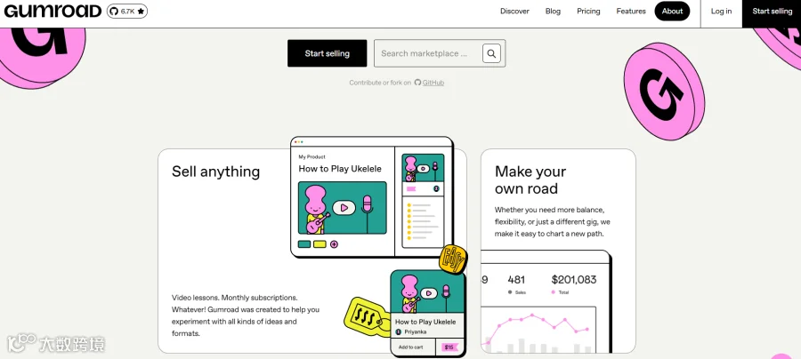 平台费用政策:如果是通过个人资料或直接链接销售,每笔交易抽 10% + $0.50/笔交易费;通过 Gumroad 市场销售, 每笔交易收取 30% 的佣金,包括所有处理费用。