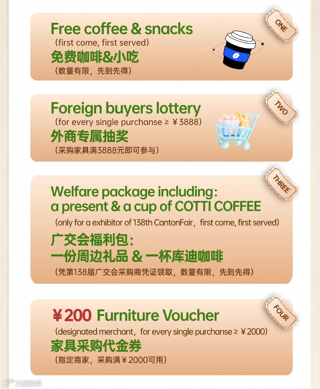 Visitor privileges provided by Sunlink Furniture City (South) during the 138th Canton Fair