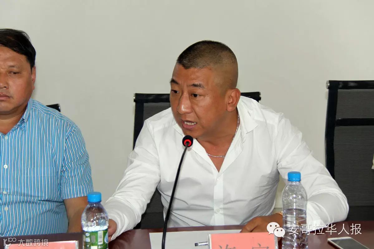 安哥拉中国城代表吕永波:感谢领导推动召开这次会议,提供这样一个学习交流的机会。在经济状况不太好的大环境下,这么多家商贸城在较短时间内相继开业,希望大家能够携手,共同规范行业经营生态,避免恶性竞争。